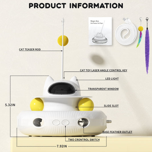 • 4 in 1 Interactive Cat Toys for Indoor Cats,Cat Laser Toys with 360°Rotation, Interactive Exercise Play Kitten Toy,Automatic Cat Wand Toys,Track Balls,Indoor Exercise Cat Kicker with USB Rechargeable